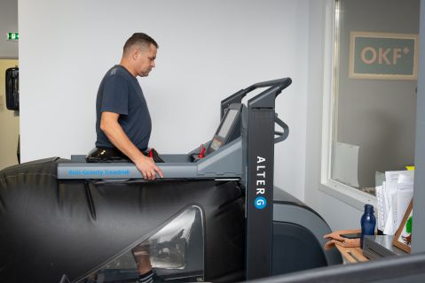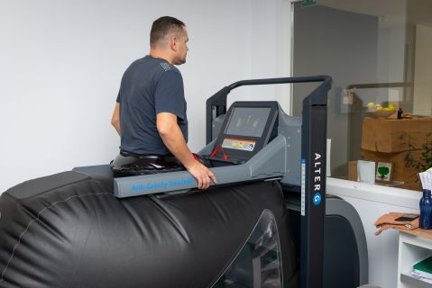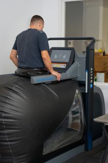 Este o banda de alergare cu tehnologie brevetata de NASA – ALTERG G care poate reduce greutatea corporala cu pana la 100%, astfel incat sportivii sau pacientii sa poata incepe mult Mai devreme recuperarea cu un risc scazut de accidentare.